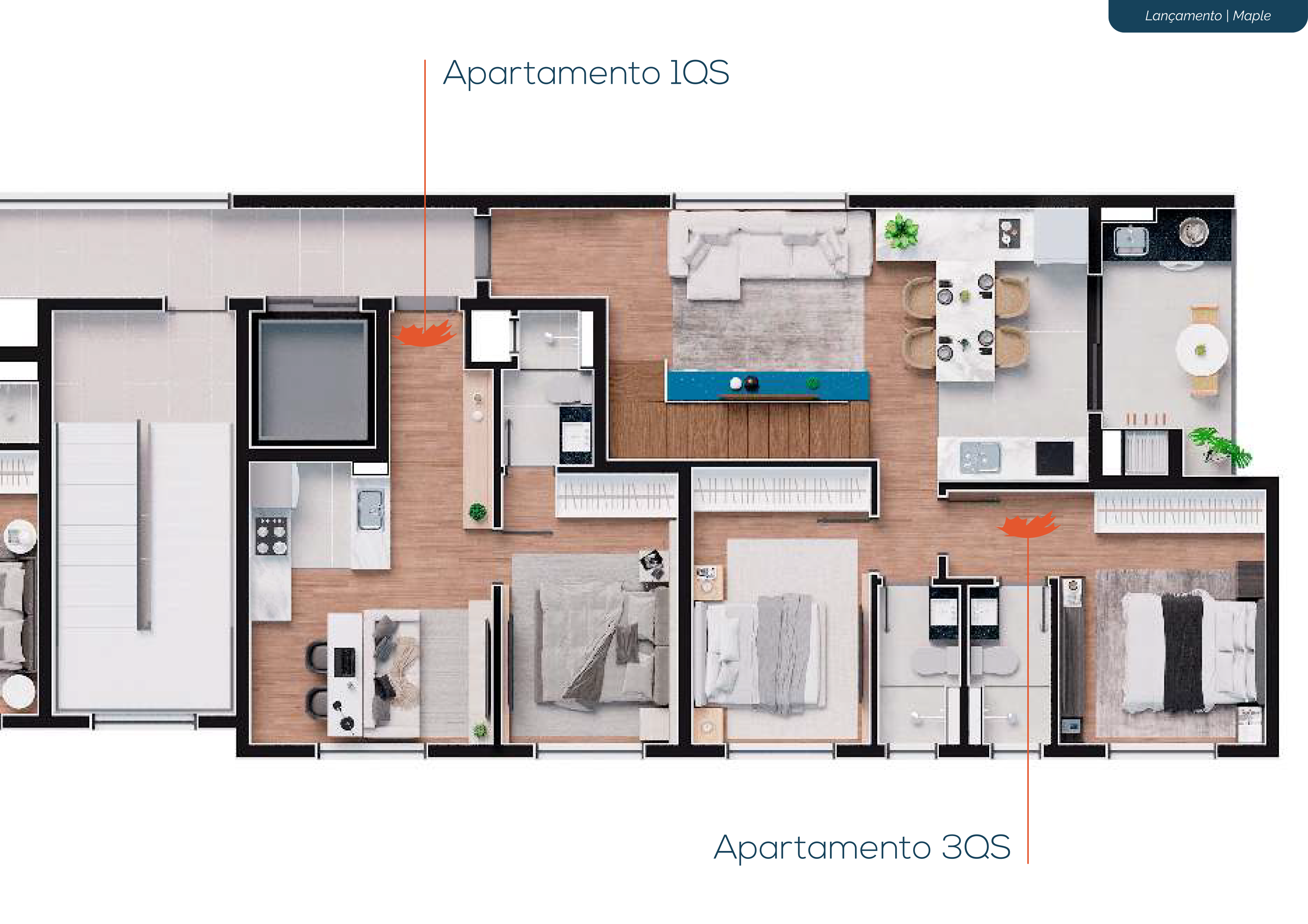 Plantas de 1, 2 e 3 quartos que variam de 31,06m² a 122,30m².
